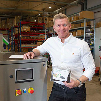Patrik Johansson (bilden t.h.) är ägare och VD för SolServ (Solutions & Services Europe AB) och en drivande visionär och entreprenör, som arbetar med hela systemet kring kompostering, dvs levererar både bioplaster och maskinerna som sedan ska kompostera plasterna.